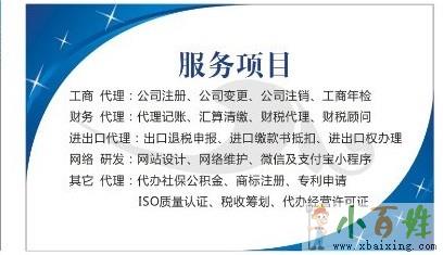 4、税务代理服务:代理税务登记、年检、变更、注销、代理各税种的纳税申报及纳税咨询www.xbaixing.com。企业所得税汇算清缴审计、企业常年财务、税务顾问、税收筹划、设计财务核算体系小~生~活~网。