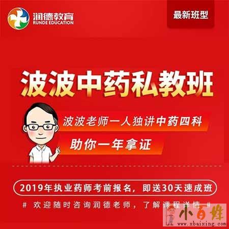 这一次福利来了:润德教育重磅推出波波老师私教班,一人独讲中药四科,用独创的“王氏幽默记忆法”,“王氏关键字秒杀词”,手把手教学,打造专属于中药学考生的精品课程xbaixing.com。